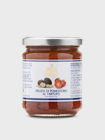 Dieses Produkt wird mit ganz frischen Zutaten zubereitet und ist eine Hommage an den Geschmack der Tradition. Es vereint den runden Geschmack von Tomate mit dem unnachahmlichen Charakter der Trüffel. Probieren Sie es zur Pasta oder auf rustikalem Toastbrot als erlesene, unwiderstehliche Vorspeise.